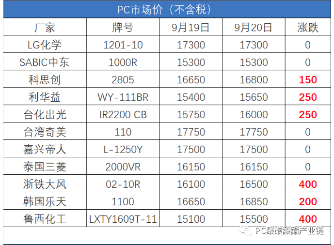 2.原料双酚A涨近2000!PC生产厂家结合在一起价格调整