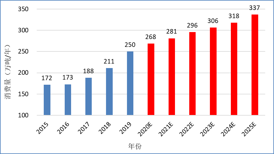 图2 展览pc聚(ju)碳酸酯消费量(liang)及展望(wang)未来标识(shi)