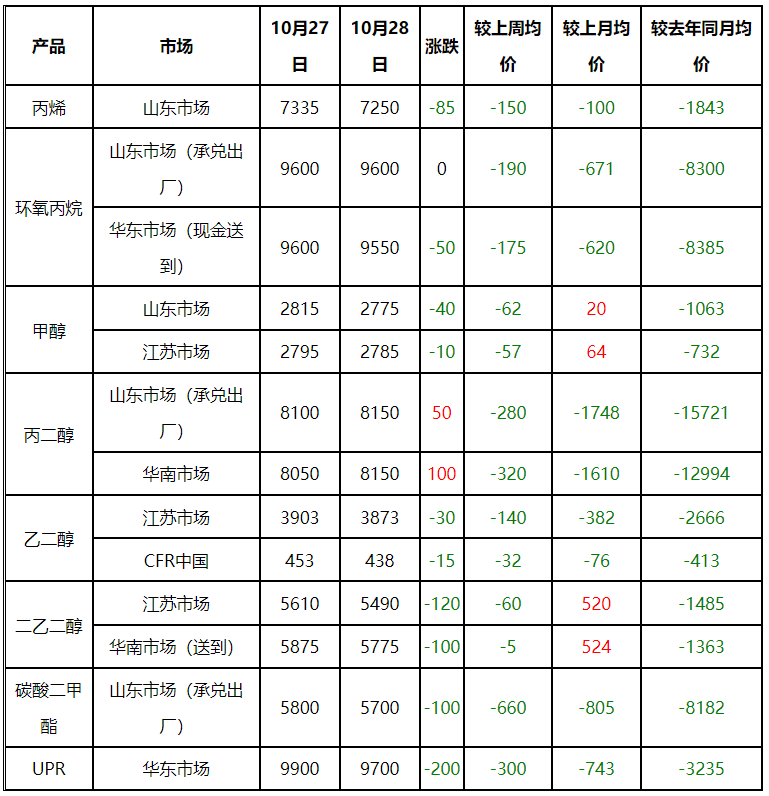 3.原资料环氧丙烷和甲醇仅在国庆假期回归头几天微弱运转,而后慢慢削弱;