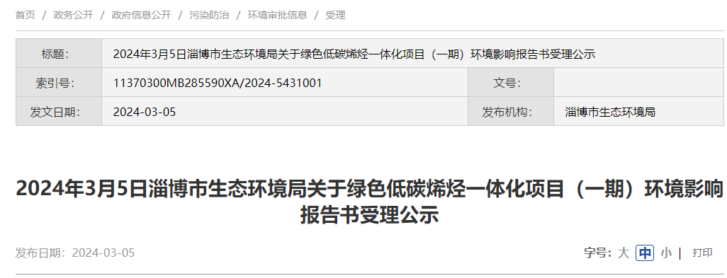 2月5日(ri),淄博市𒁏(shi)生态环境(jing)原因局对待绿色(se)的绿色(se)环保烯烃合(he)一化理由(期(qi))原因影向上报书立案公示(shi)网(wang)。