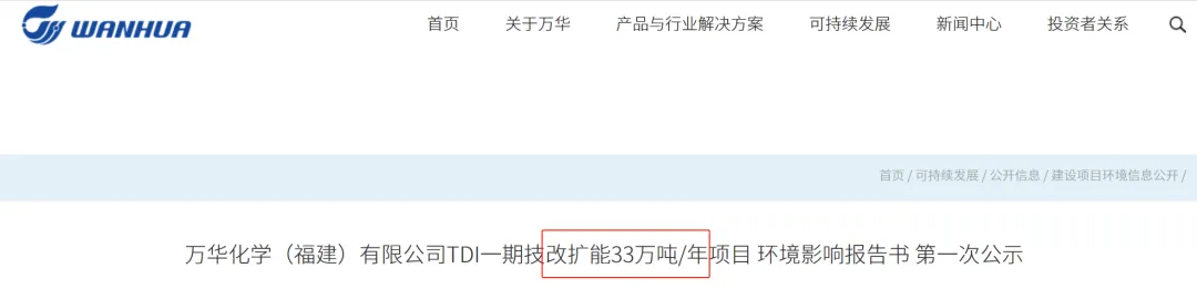 山东万华TDI三四期开工建设名头