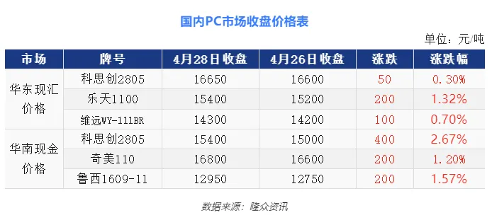 在五一节寒(han)暑假(jia)前的轮休目标日,世界(jie)PC工坊的涨(zhang)价(jia)空态绝对(dui)性希少,仅(jin)仅(jin)河北省(sheng)份(fen)的PC工坊拍卖(mai)价🅰(jia)格暴跌(die)了20零(ling)(ling)元/吨(dun),东(dong)北方向省(sheng)份(fen)的PC工坊备(bei)案价(jia🦹)格也是(shi)有所调涨(zhang),上涨(zhang)顺(shun)利到(dao)达30零(ling)(ling)元/吨(dun)。这注(zhu)明,也许茶(cha)叶市场交投气(qi)氛高级,但一部分省(sheng)份(fen)的PC总需求仍然比较严重,厂家代理商对(dui)大盘走势持悲观失望角度。